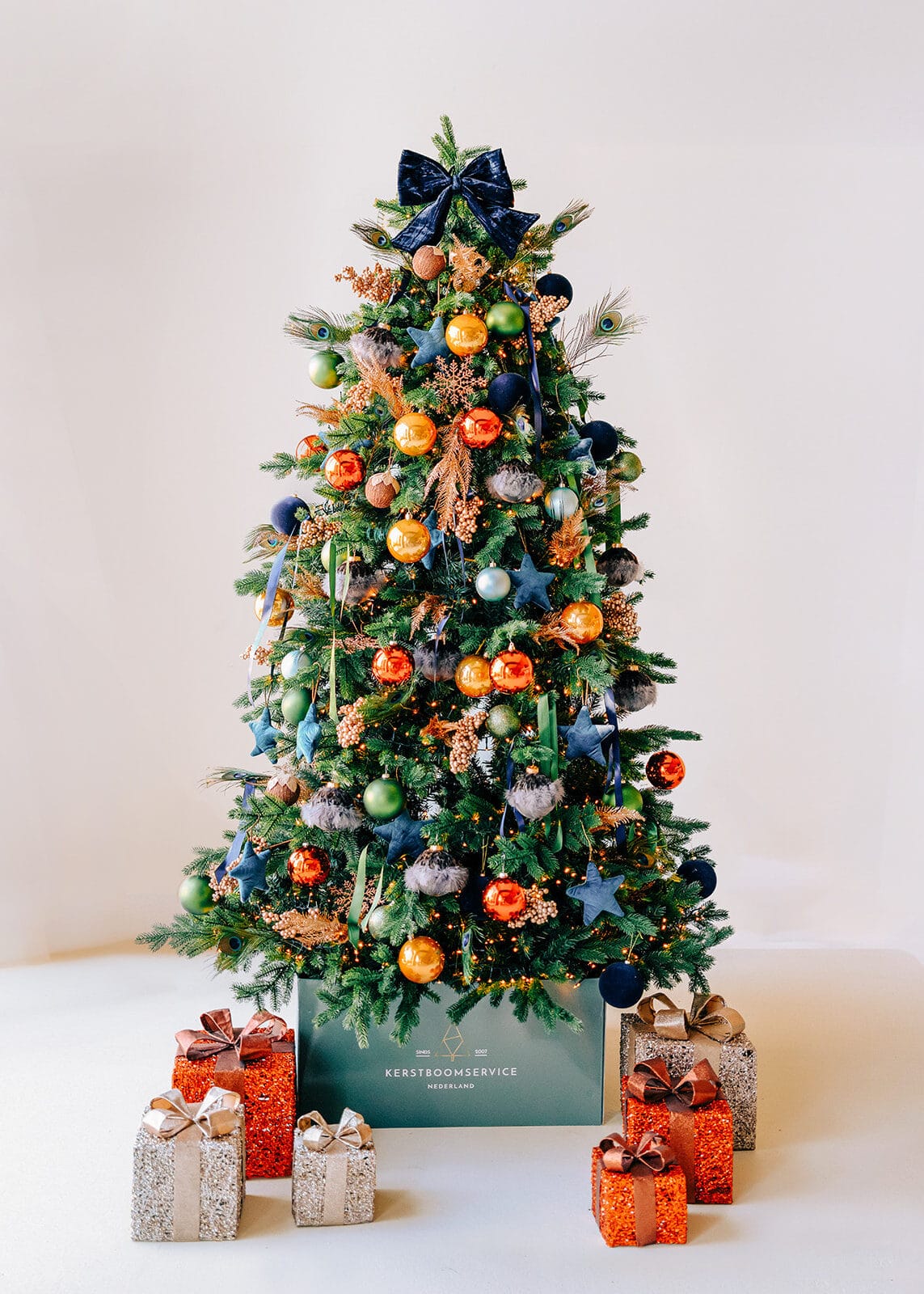 De meest explosieve boom die u ooit heeft gezien! vol met sprankelende ballen, gave hangers, linten en lichtjes. De boom heeft het allemaal! Een echte eyecatcher op uw locatie. Deze afbeeldingen bieden een impressie van wat u kunt verwachten. I.V.M. beschikbare voorraad kan het voorkomen dat enkele hangers verschillen van de afgebeelde foto. TIP: Vergeet je boom niet te upgraden met prachtige pakjes voor onder de boom. Die zijn los bij te bestellen voor 39,50 per setje van drie formaten pakjes, en maken het geheel nog meer af! Genoemde prijzen zijn huurprijzen inclusief op en afbouw door onze stylisten.