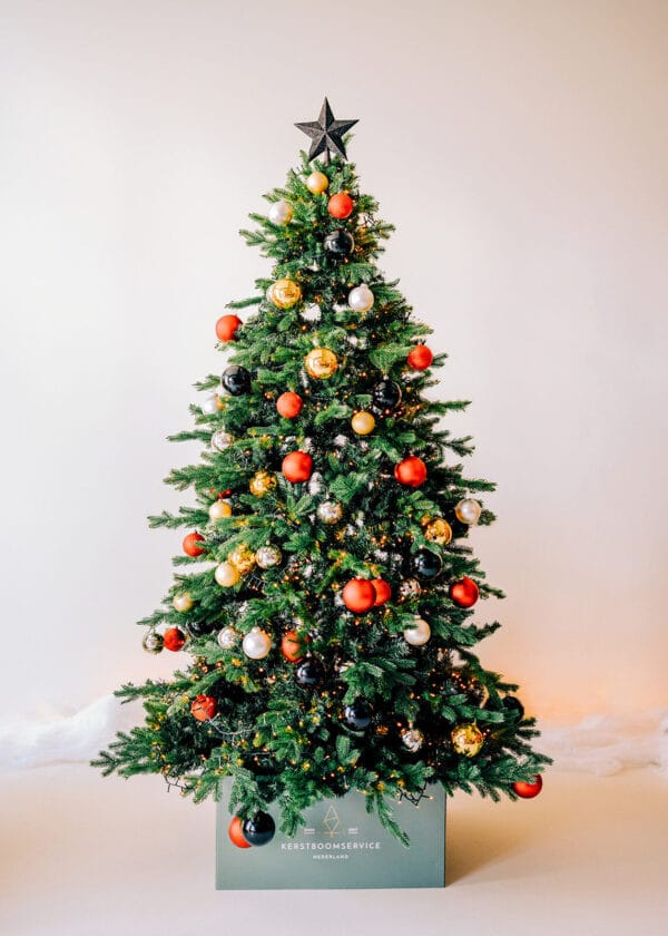 Een prachtige boom, die jouw locatie helemaal in de kerstsfeer brengt! Kies voor de basic boom en je ontvangt een prachtige boom met alleen ballen en lichtjes, volledig in het door jouw gekozen thema! Deze afbeelding biedt een nauwkeurige voorstelling van wat u kunt verwachten. I.V.M beschikbare voorraad kan het voorkomen dat enkele hangers verschillen van de afgebeelde foto. Echter geeft deze afbeelding een goede impressie. TIP: Vergeet je boom niet te upgraden met prachtige pakjes voor onder de boom. Die zijn los bij te bestellen per setje van drie formaten pakjes, en maken het geheel nog meer af! Genoemde prijzen zijn huurprijzen inclusief op en afbouw door onze stylisten.