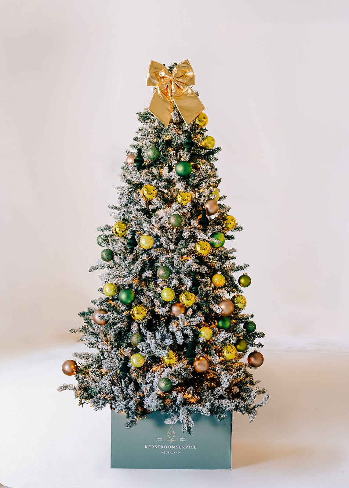 Een prachtige boom, die jouw locatie helemaal in de kerstsfeer brengt! Kies voor de basic boom en je ontvangt een prachtige boom met alleen ballen en lichtjes, volledig in het door jouw gekozen thema! Deze afbeelding biedt een nauwkeurige voorstelling van wat u kunt verwachten. I.V.M beschikbare voorraad kan het voorkomen dat enkele hangers verschillen van de afgebeelde foto. Echter geeft deze afbeelding een goede impressie. TIP: Vergeet je boom niet te upgraden met prachtige pakjes voor onder de boom. Die zijn los bij te bestellen per setje van drie formaten pakjes, en maken het geheel nog meer af! Genoemde prijzen zijn huurprijzen inclusief op en afbouw door onze stylisten.