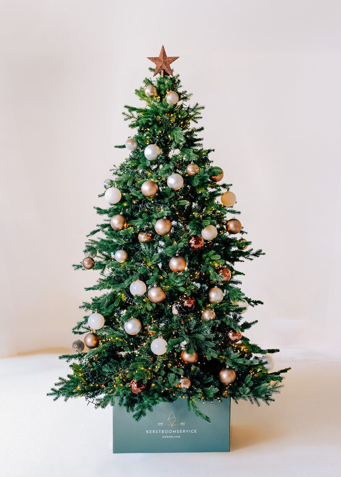 Een prachtige boom, die jouw locatie helemaal in de kerstsfeer brengt! Kies voor de basic boom en je ontvangt een prachtige boom met alleen ballen en lichtjes, volledig in het door jouw gekozen thema! Deze afbeelding biedt een nauwkeurige voorstelling van wat u kunt verwachten. I.V.M beschikbare voorraad kan het voorkomen dat enkele hangers verschillen van de afgebeelde foto. Echter geeft deze afbeelding een goede impressie. TIP: Vergeet je boom niet te upgraden met prachtige pakjes voor onder de boom. Die zijn los bij te bestellen per setje van drie formaten pakjes, en maken het geheel nog meer af! Genoemde prijzen zijn huurprijzen inclusief op en afbouw door onze stylisten.