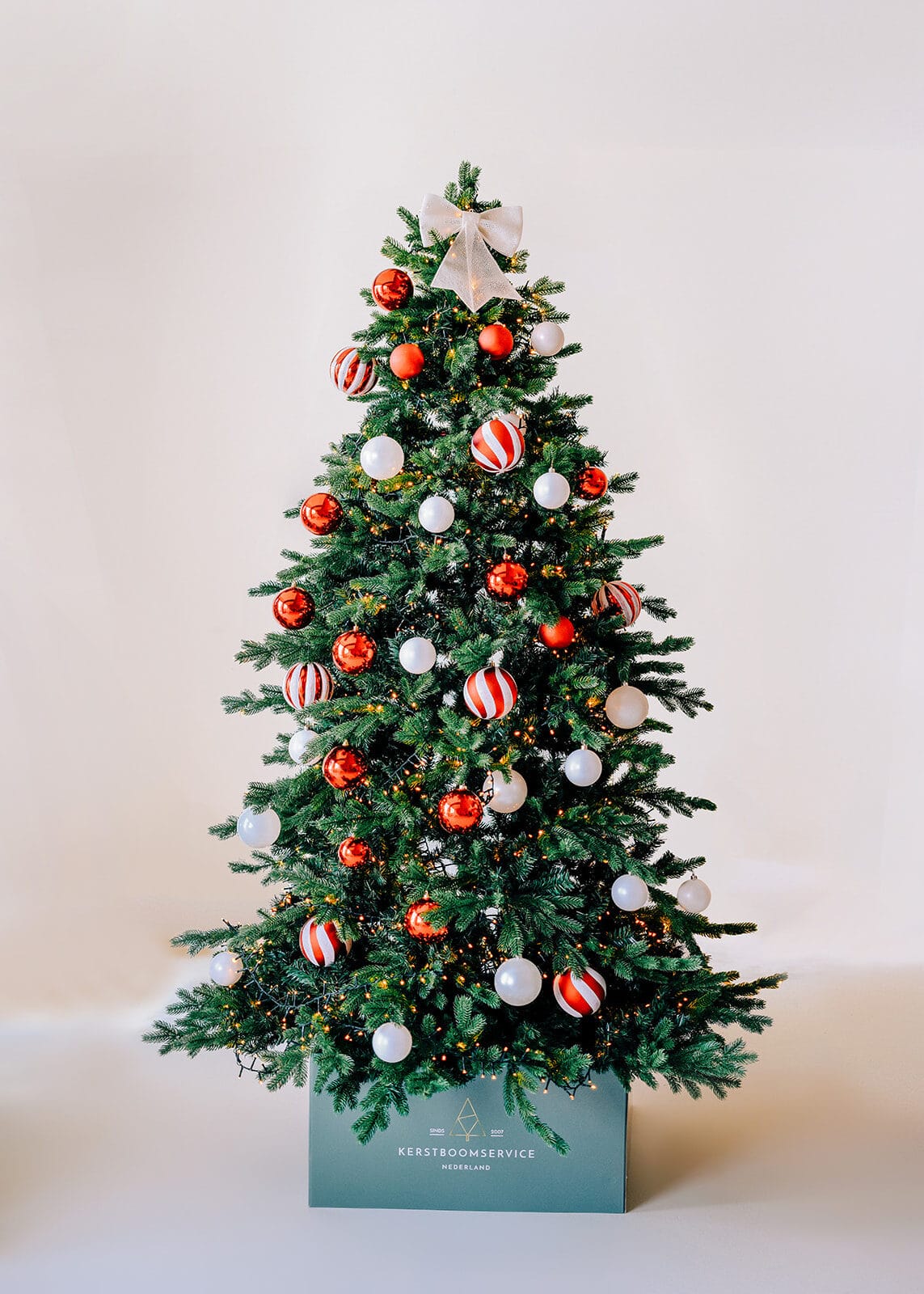 Een prachtige boom, die jouw locatie helemaal in de kerstsfeer brengt! Kies voor de basic boom en je ontvangt een prachtige boom met alleen ballen en lichtjes, volledig in het door jouw gekozen thema! Deze afbeelding biedt een nauwkeurige voorstelling van wat u kunt verwachten. I.V.M beschikbare voorraad kan het voorkomen dat enkele hangers verschillen van de afgebeelde foto. Echter geeft deze afbeelding een goede impressie. TIP: Vergeet je boom niet te upgraden met prachtige pakjes voor onder de boom. Die zijn los bij te bestellen per setje van drie formaten pakjes, en maken het geheel nog meer af! Genoemde prijzen zijn huurprijzen inclusief op en afbouw door onze stylisten.